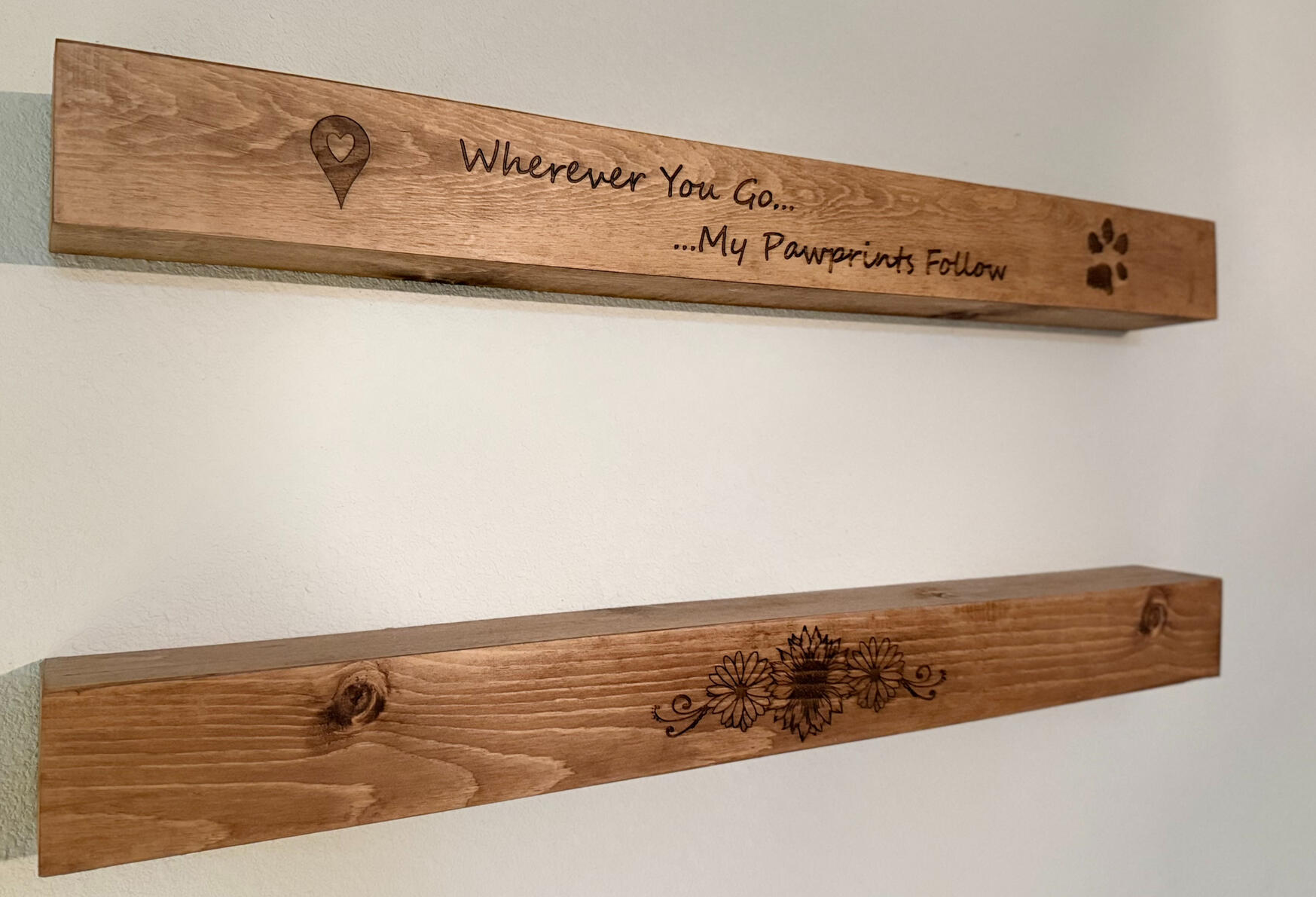 Inspired by the quiet beauty of country living, our laser-etched décor brings warmth and character to any space. From rustic coasters to striking floating beam shelves, every piece is thoughtfully crafted to add a touch of charm and personality to your home.Want something truly unique? We offer full customization—whether it’s your family name, a meaningful quote, or a design that speaks to your story, we’ll bring it to life.Contact us today to explore designs, customization options, and pricing.